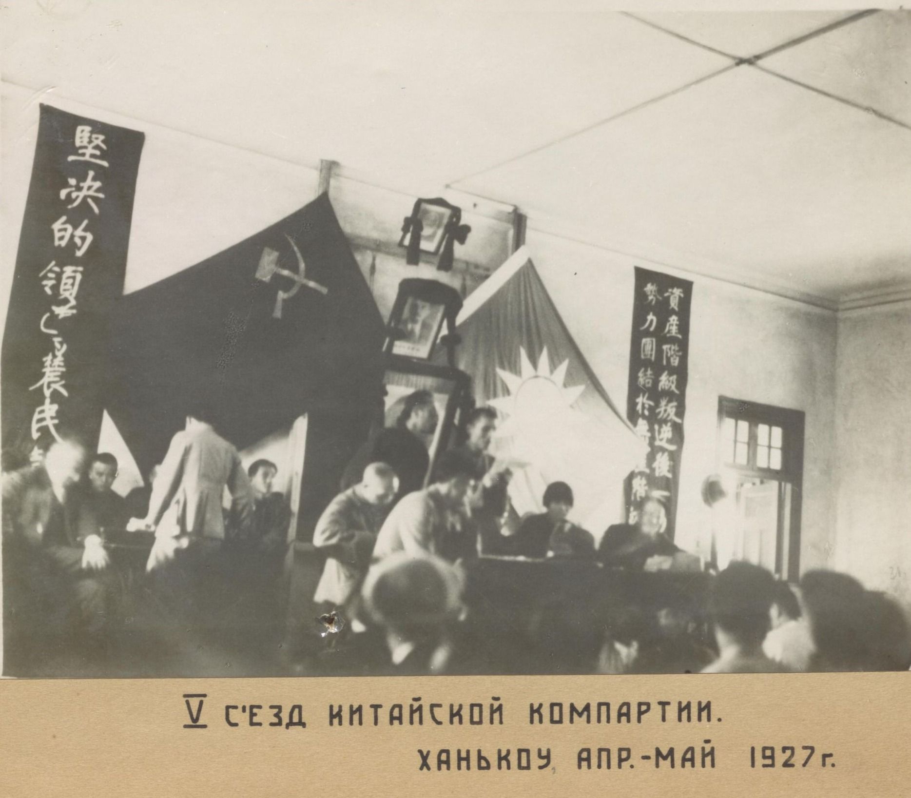 中共五大会场历史照片,下方用俄文标记了“1927年4-5月 中共五次代表大会”。通讯员刘翔供图