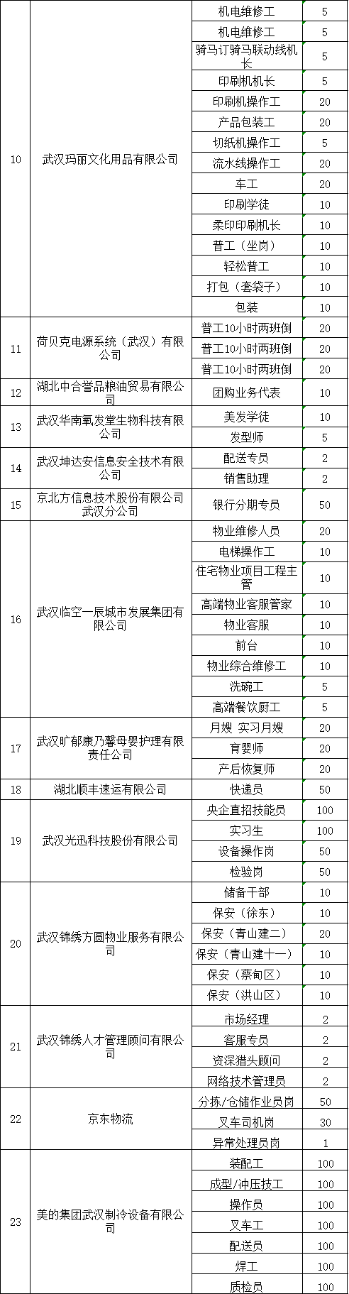 现场,京东、美的、中百、华中数控、万科物业等知名企业都以高薪招人,多个岗位放宽年龄上限至45岁,个别岗位明确55岁以下即可。