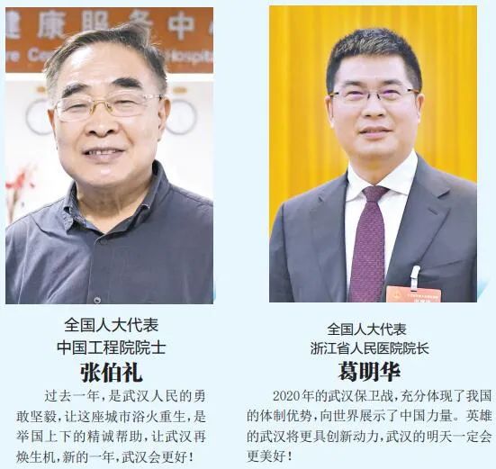 正在参加全国两会的全国人大代表、中国工程院院士、天津中医药大学校长张伯礼,今年为武汉点赞时说,“过去一年,是武汉人民的勇敢坚毅,让这座城市浴火重生,是举国上下的精诚帮助,让武汉再焕生机,新的一年,武汉会更好!”