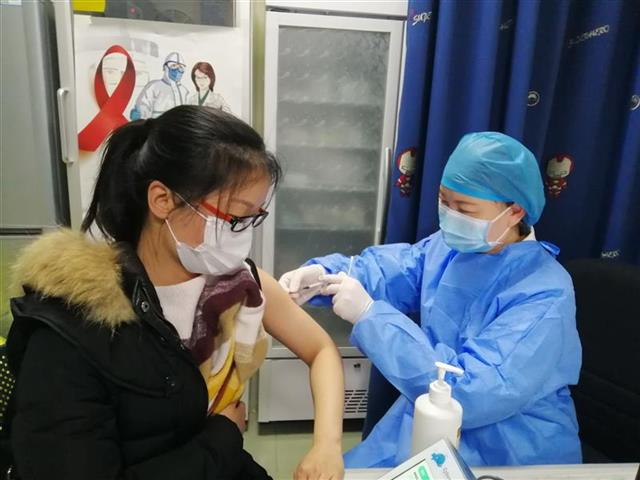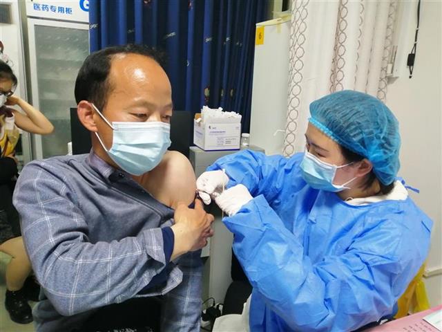 碰巧,在黄萍的身边,武汉市第四医院党委书记袁英红也来接种新冠病毒疫苗。看到大医院负责人卷起袖子接种,黄萍悬着的心放了下来。“医务工作者都接种了,我们还有啥担心的。”黄萍笑着伸出了胳臂。