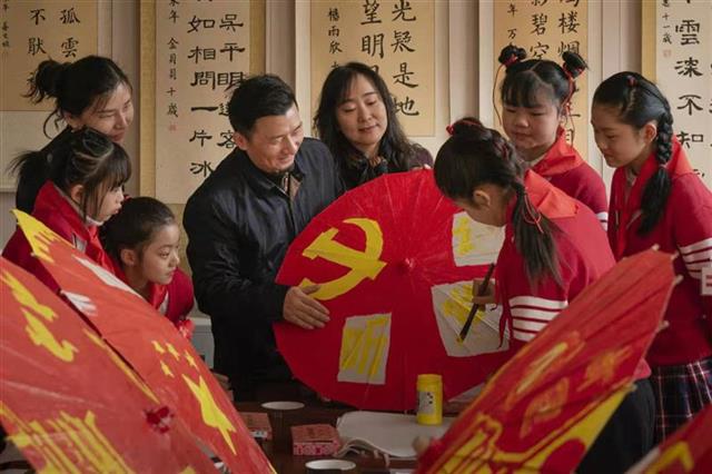 湖北日报讯(通讯员王武蓉)“这是湖北省非遗文化项目——‘苏恒泰’油纸伞第五代传人苏峰教我们做的!”3月17日,武汉市硚口区南阳村小学学生们很是自豪,该校油纸伞社团的孩子们制作完成一批印有党徽、国旗标志的油纸伞。