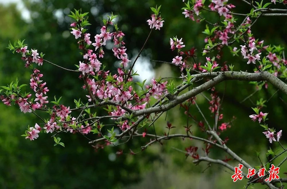 3月17日,东西湖极地海洋公园一株碧桃树开出两色花。长江日报记者李永刚 摄