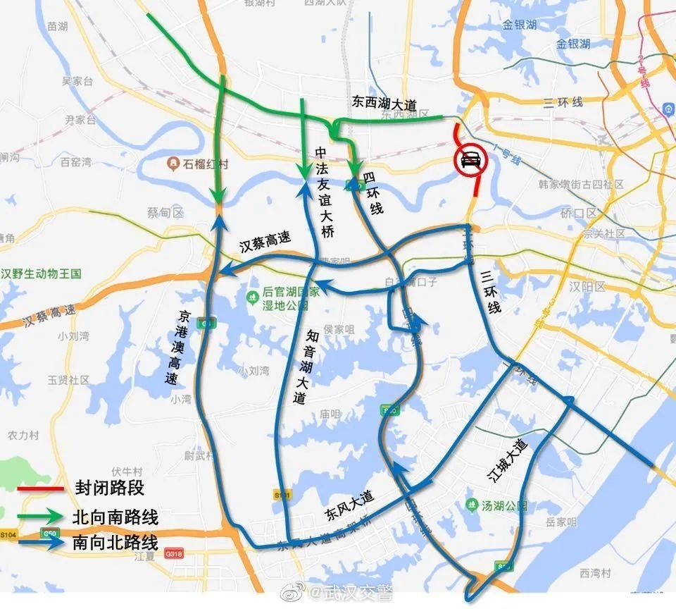 ② 需绕行中法友谊大桥的车辆可通过东风大道、知音湖大道、东西湖大道;