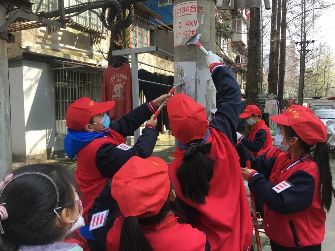 清扫道路边的纸屑、清理电线杆上的小广告……小志愿者们分工合作、干劲十足,当好服务社区的“主人公”,激发扮靓家园的责任感。