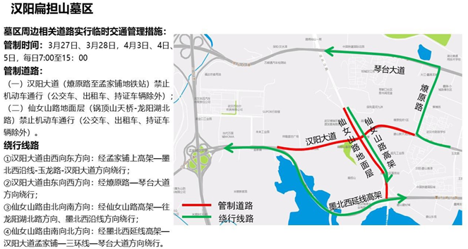(一)汉阳大道(燎原路至孟家铺地铁站)禁止机动车通行(公交车、出租车、持证车辆除外)。