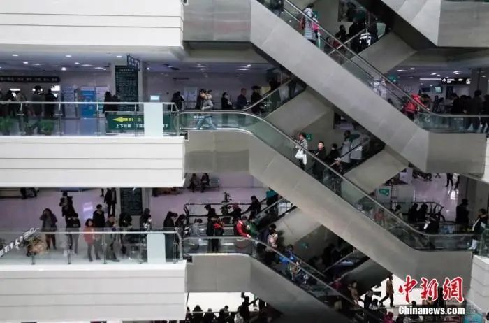 资料图:市民在医院门诊大厅间隔排队挂号。中新社记者 杨迪 摄