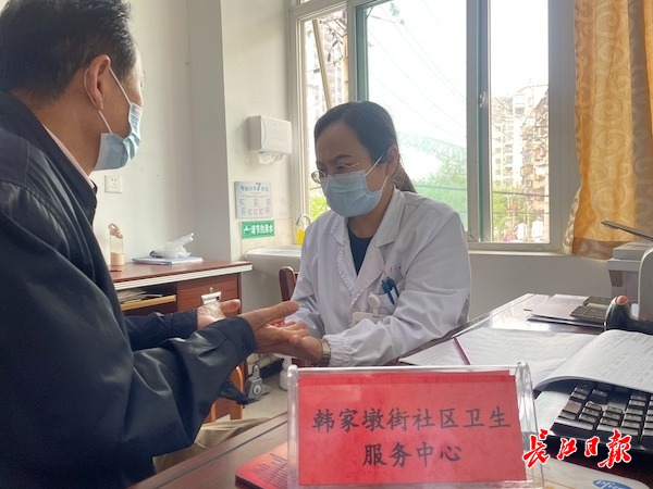 武汉市中医医院脑病二科副主任张京兰下沉硚口区韩家墩街社区卫生服务中心坐诊。通讯员邹琪 摄