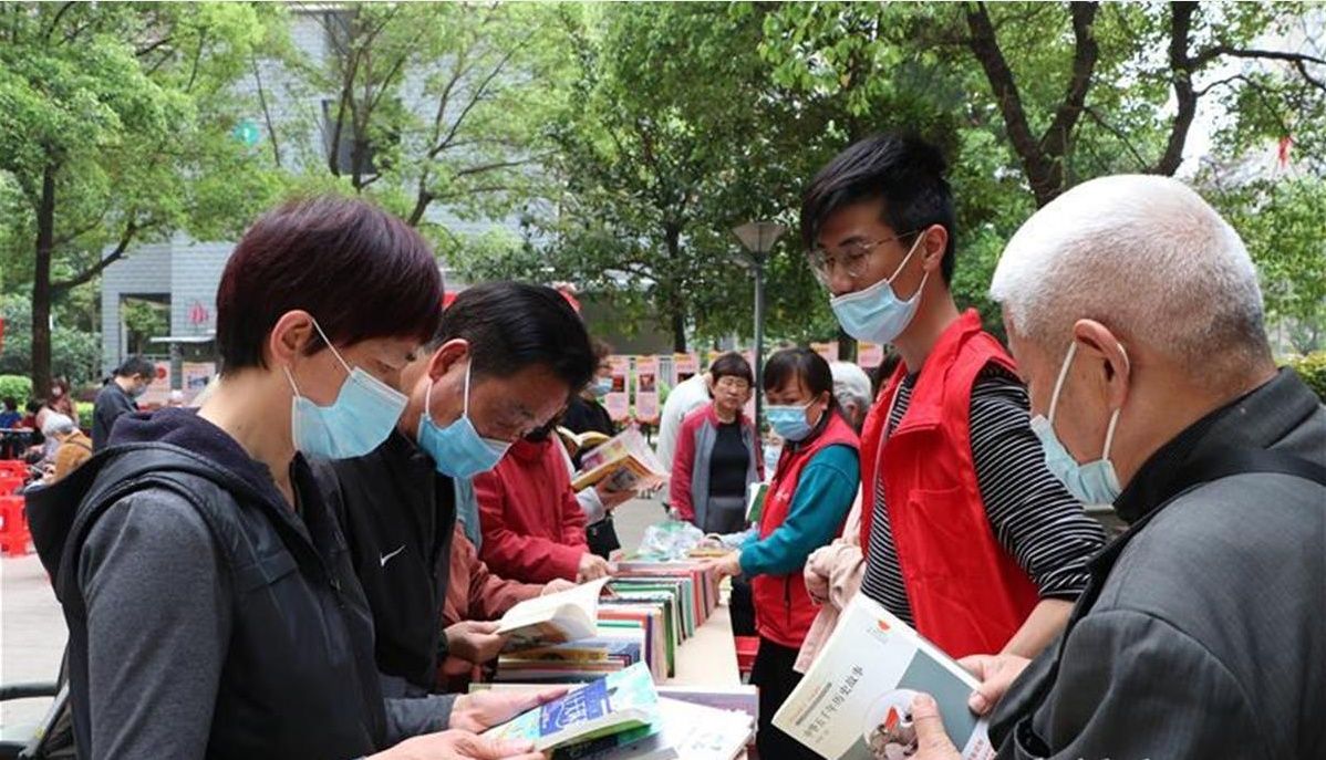 4月16日,武汉市硚口区硚北社区举办“一本书·一份情”的以书易书活动。不少居民捐献出压箱底的好书与社区居民分享。当日,社区共收到了包括党史学习书籍在内的各类图书500多本。