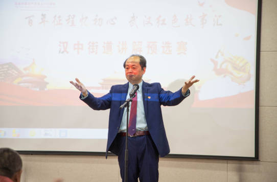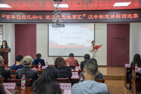 为隆重庆祝中国共产党成立100周年,在全街广泛开展“学四史”宣传教育,在党员群众中厚植爱党爱国情怀,弘扬革命传统,赓续红色基因,4月19日下午,汉中街道举办“百年征程忆初心 武汉红色故事汇”讲解预选赛。