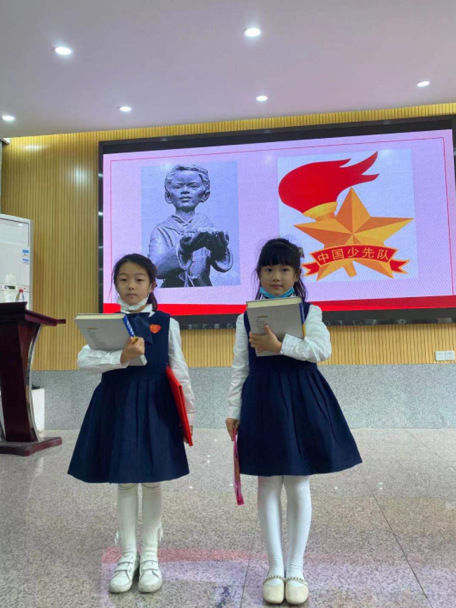 随后两名少先队员声情并茂地讲述了董存瑞炸碉堡和鸡毛信的故事,表示继承发扬革命先烈优良传统。