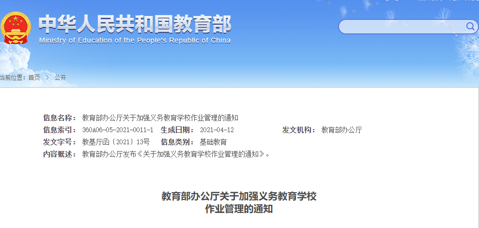 为贯彻落实中央有关精神,进一步规范学校教育教学管理,全面提高教育教学质量,坚决扭转一些学校作业数量过多、质量不高、功能异化等突出问题,现就加强义务教育学校作业管理有关要求通知如下。