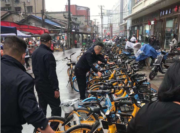 ○开展取缔流动摊贩、规范出店占道、清理乱堆乱放、规整共享单车等整治行动。