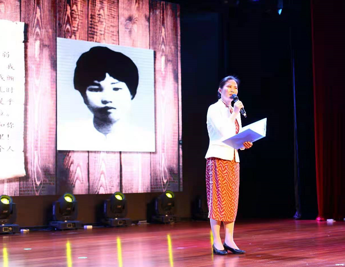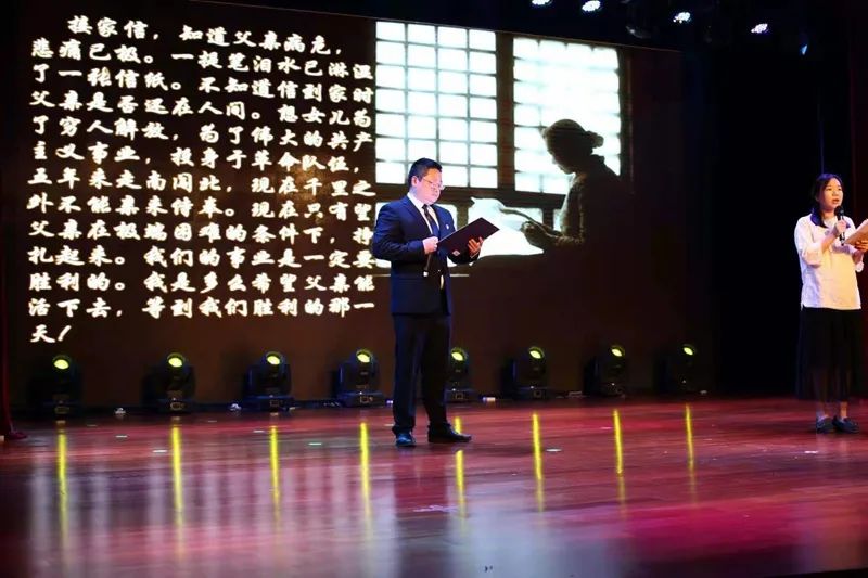 硚口区韩家墩小学(北区)副校长耿晓莹,带着孩子登台朗诵《赵一曼写给宁儿的一封信》。