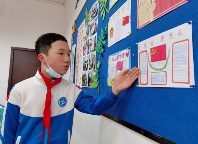 学生们纷纷绘制手抄报,以此更深刻地了解党史,明史于心、励志于行。