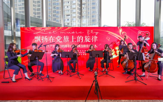 5月11日,汉中街道在越秀财富中心举办“飘扬在党旗上的旋律”庆祝中国共产党成立100周年红色经典交响音乐会。