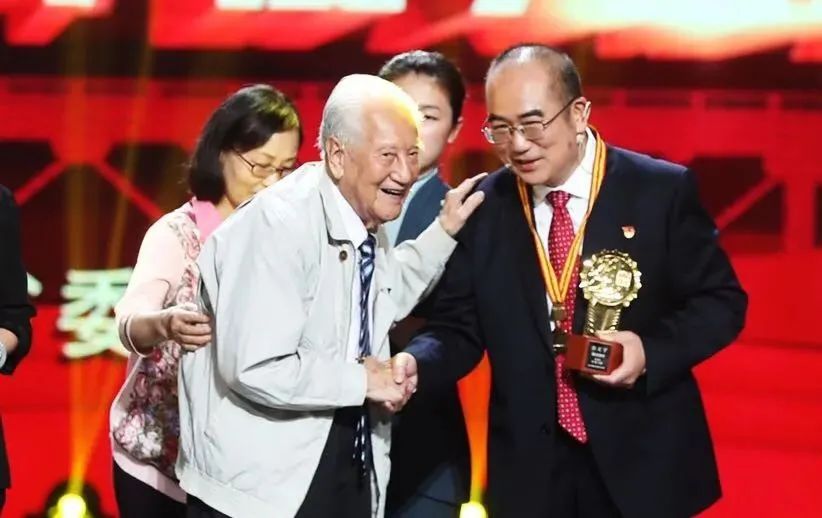 现场,95岁高龄的黄旭华出现在台上时,张定宇快步向前迎接,这一幕令人动容。黄老在搀扶下,为张定宇戴上奖章,两位英雄紧握双手相惜。