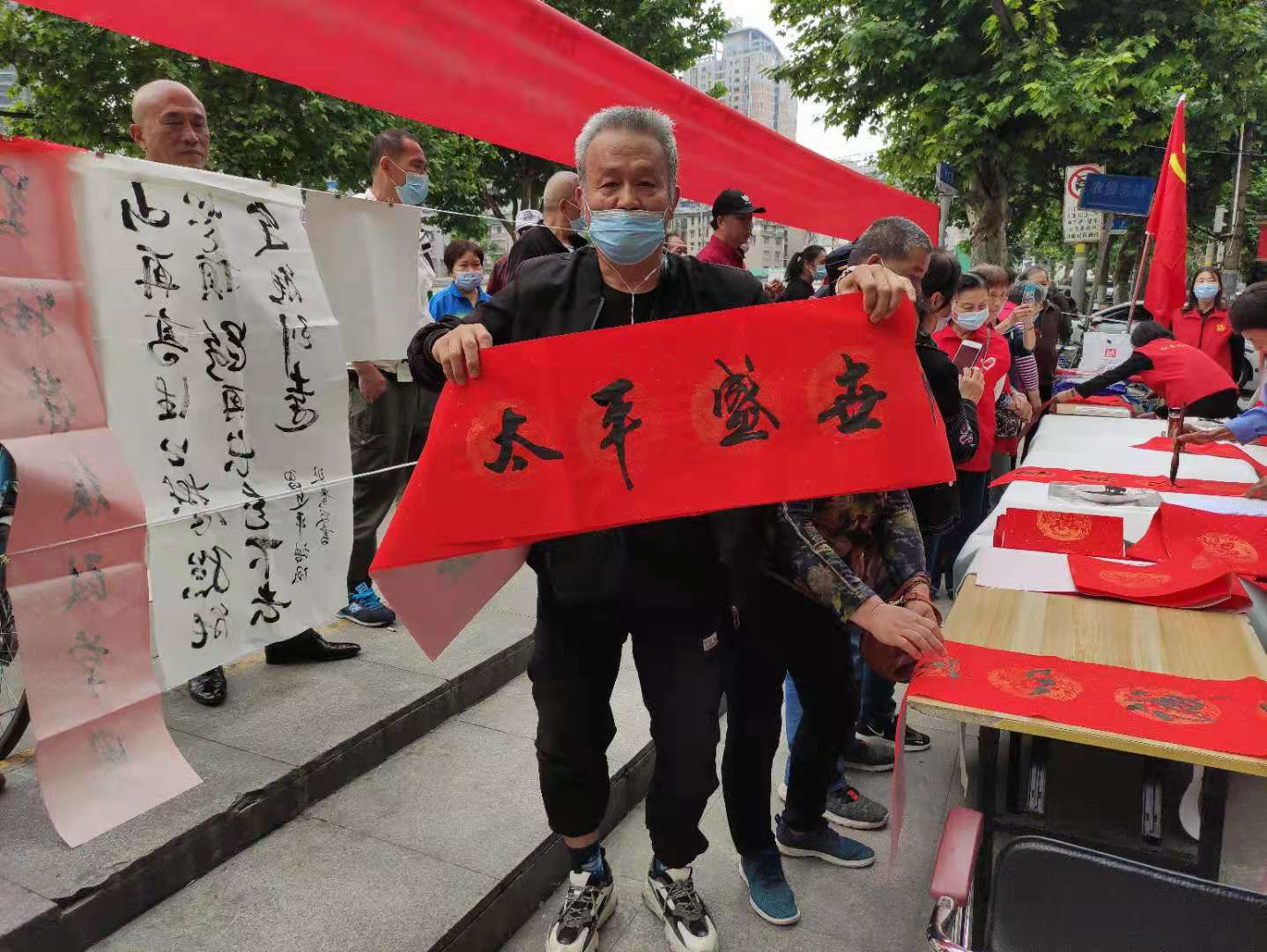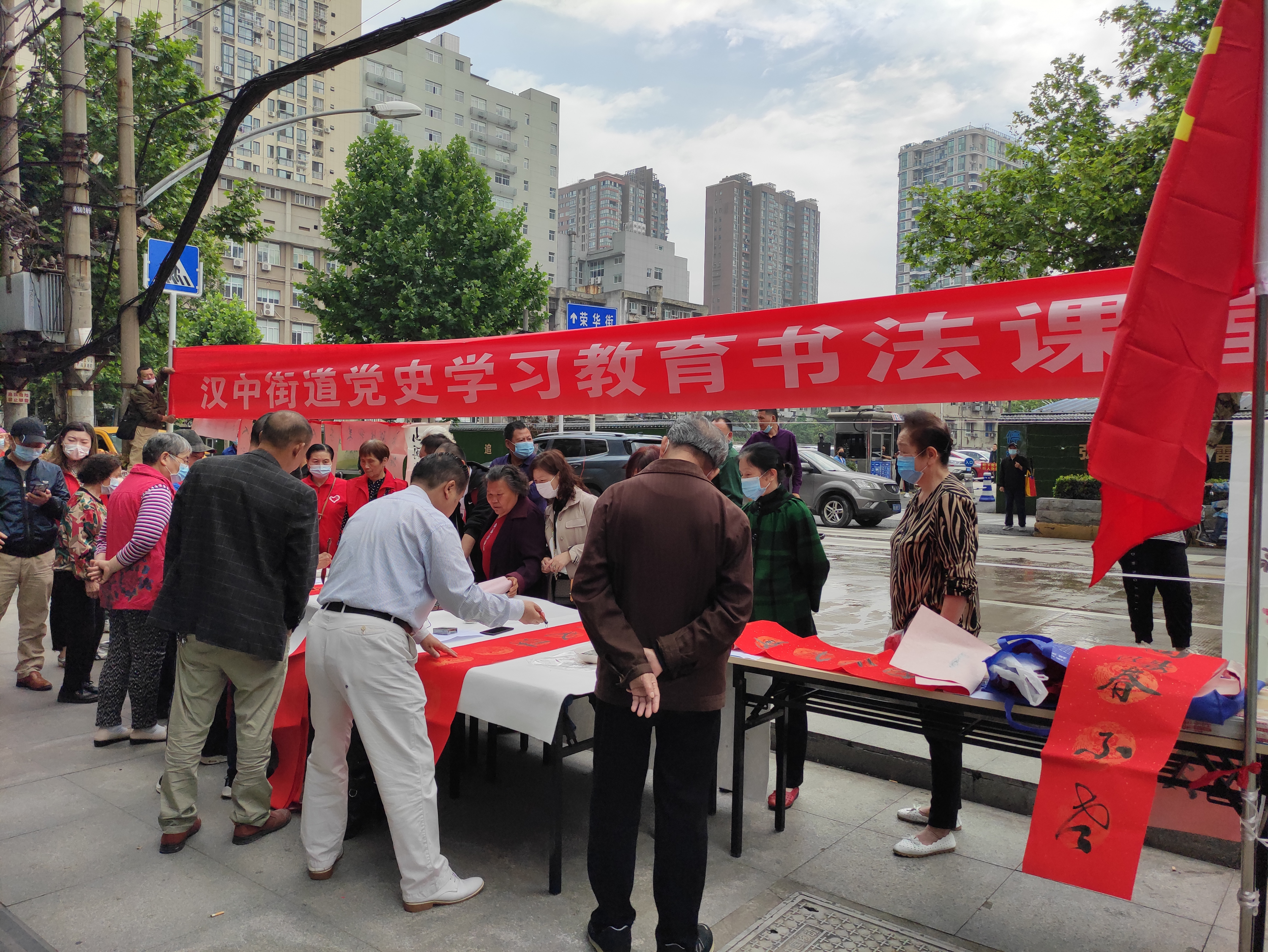 为加强党史学习教育,丰富党史学习形式,5月20日上午,汉中街道在崇仁路人力市场门前开展“党史学习教育书法课堂”文明实践活动。