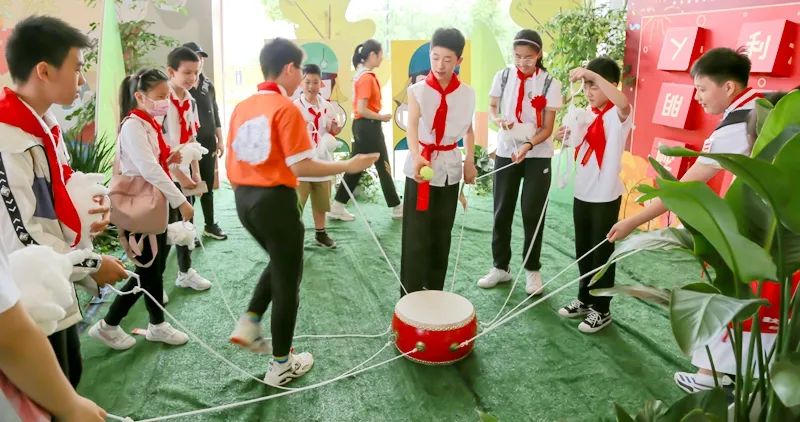 陈家墩学校“鹰击长空,展翅翱翔”立体飞机游戏,舵落口小学历史摄影图片拼图,易家墩小学“穿越火线”,水厂路小学团结校区“绣出祖国好山河”……花式体验活动邀请学生和家长共同参与。
