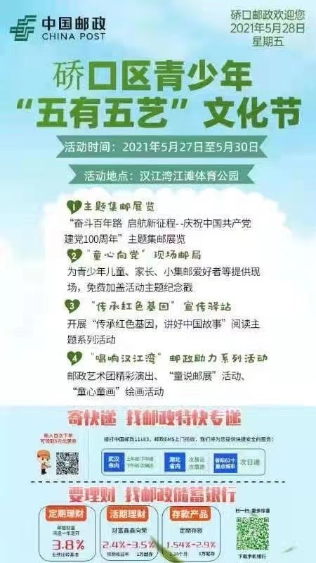 硚口区教育局联手中国邮政集团有限公司武汉市分公司开展在活动现场开展“童心向党”个性化邮票设计打印、赠书等活动,得到学生们的欢迎。