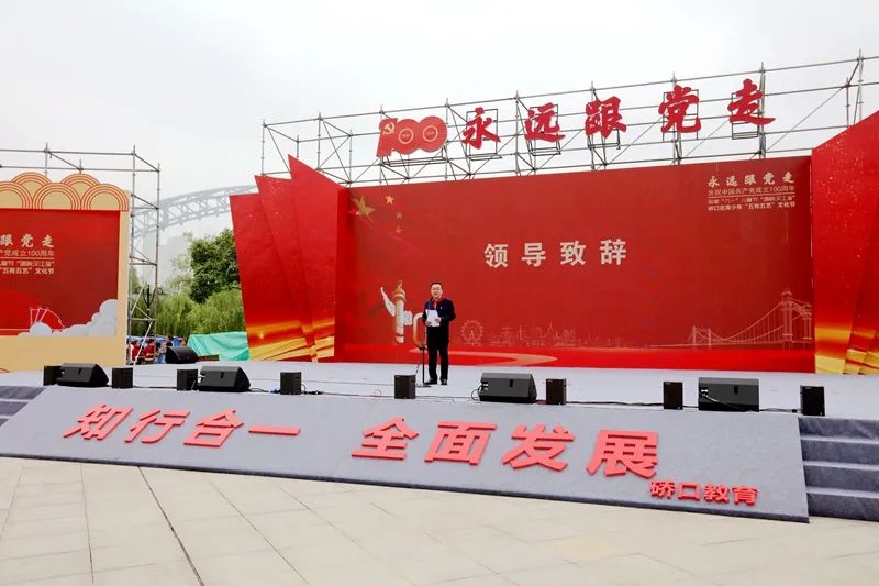 5月27日上午,“永远跟党走”庆祝中国共产党成立100周年——欢度“六一”儿童节“唱响汉江湾”硚口青少年五有五艺文化节在硚口区汉江湾体育公园开幕。武汉市教育局党委书记李超、中国邮政武汉市分公司总经理徐从山,硚口区委、区人大、区政府、区政协领导班子,硚口区关工委和相关部门负责人,及全区师生、家长代表共庆节日。