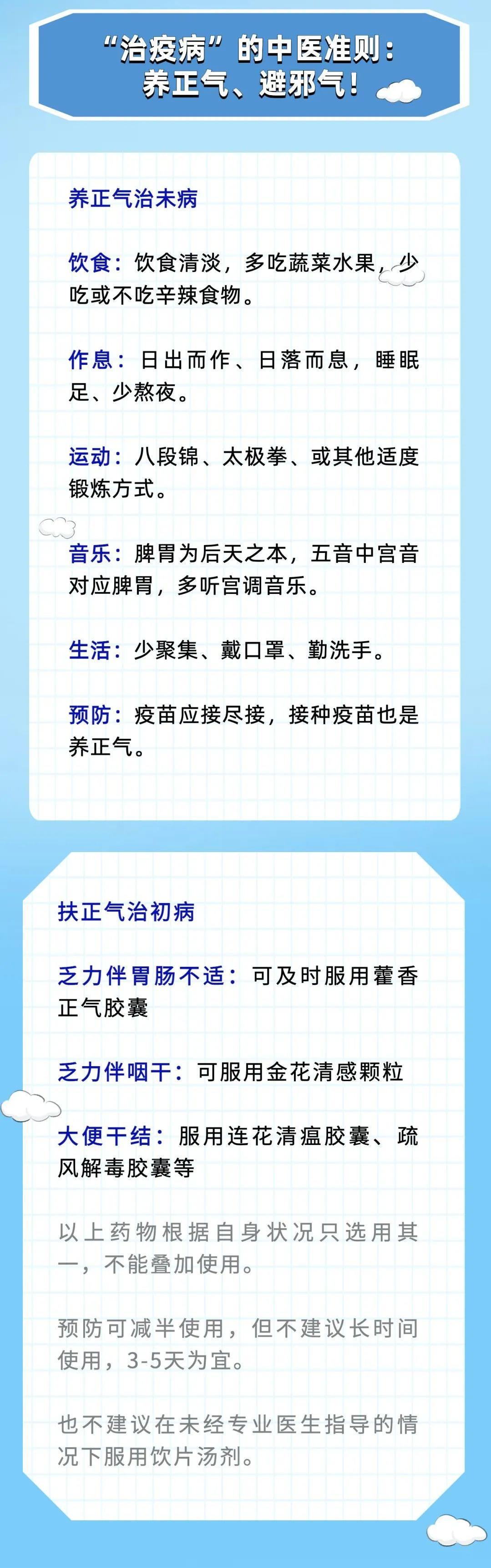 如果市民与阳性感染者密接处于医学观察期,或自认有风险点位接触。可根据不同的身体特点服用一些中成药。素常有乏力伴胃肠不适,可及时服用藿香正气胶囊;乏力伴出现咽干可服用金花清感颗粒;平常大便干结者可服用连花清瘟胶囊、疏风解毒胶囊等。调节人体的状态,养正气,减少发病的机会。以上药物根据自身状况只选用其一,不能叠加使用。