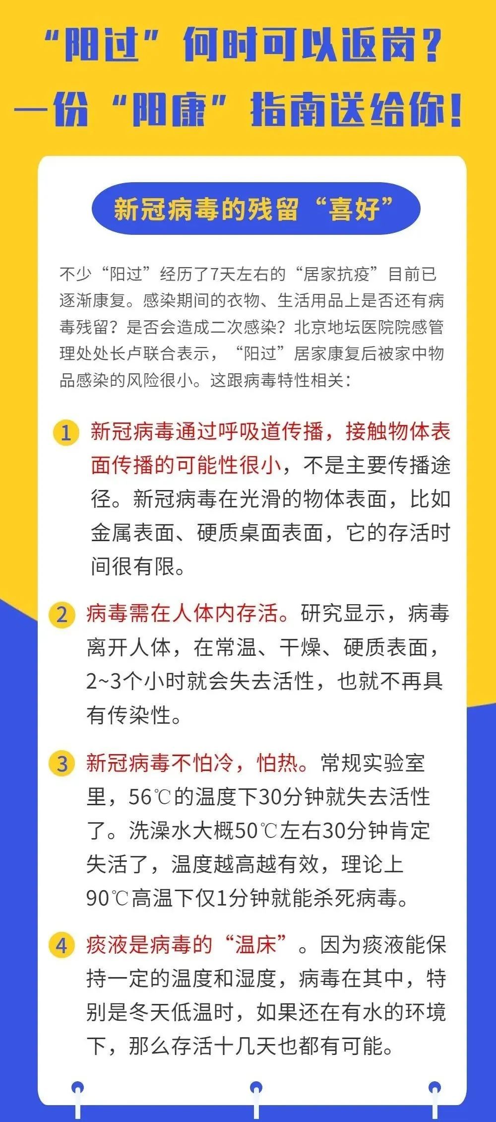 近段时间,不少新冠病毒阳性感染者居家治疗后逐渐康复。但“阳过”们实在担心:家里的被子床单会不会藏匿病毒再次感染?“阳过”的家里该如何消杀才算“阳康”?何时返岗才不会造成新的感染?北京地坛医院院感管理处处长卢联合,北京佑安医院感染综合科主任医师、小汤山方舱医院医疗专家李侗曾等专家给出了“阳康”指南!