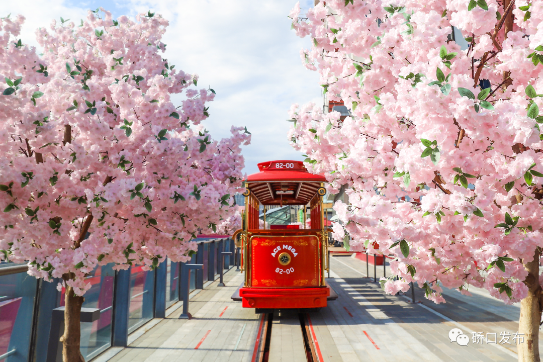 门口的复古红小火车,车厢内外设计得很精致,非常上镜,开放式的车厢可以走进去,选个好角度,随便凹造型。在特定的时间,小火车会开动,当暖阳撒进车厢,整个气氛都变得柔和起来,随手一拍都是打卡大片。