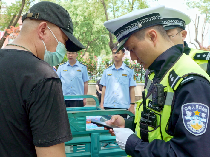 接到投诉后仅5分钟,联合执法人员到达现场。执法队员查处占道经营情况,交警查处农用车在非规定时间内进入市区,市场监督管理员仔细检验电子秤量值是否准确、铅封是否损坏。联合管理,迅速反应,快速解决,高效精准。