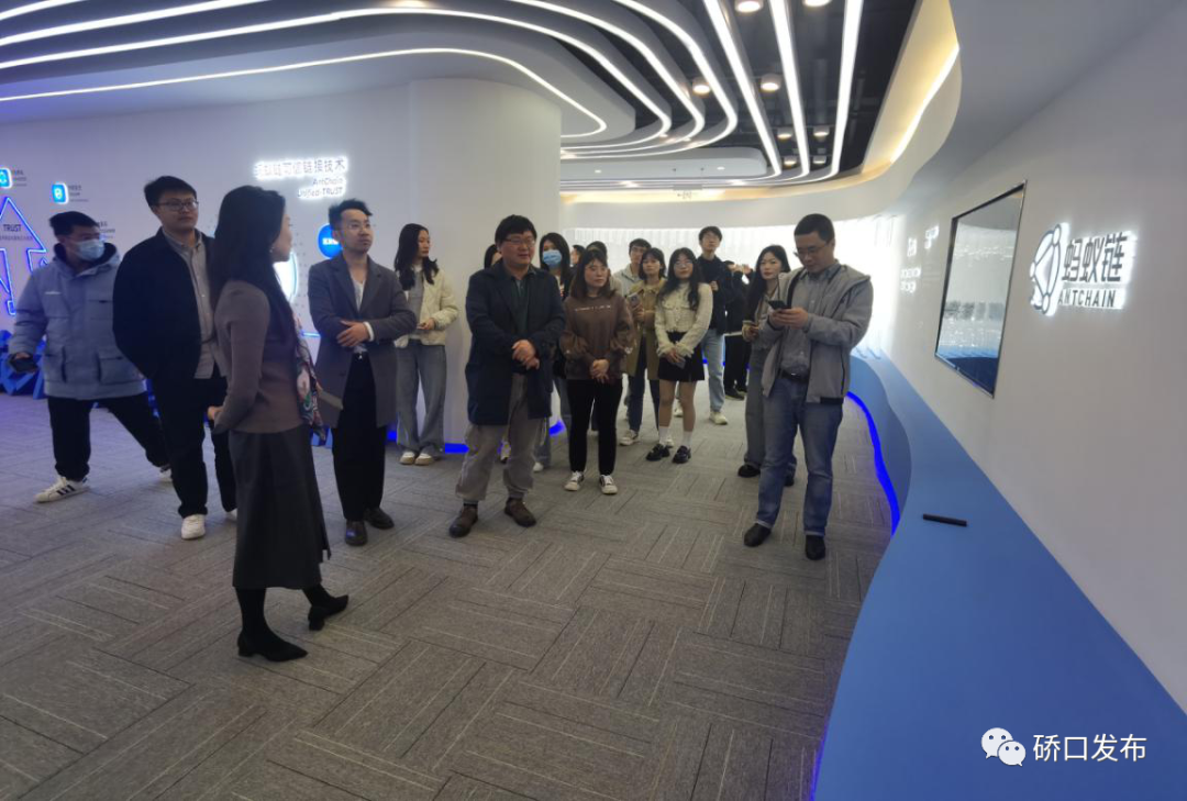 ▲学生代表参观武汉蚂蚁链产业创新中心