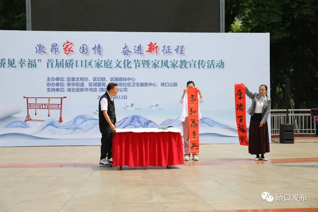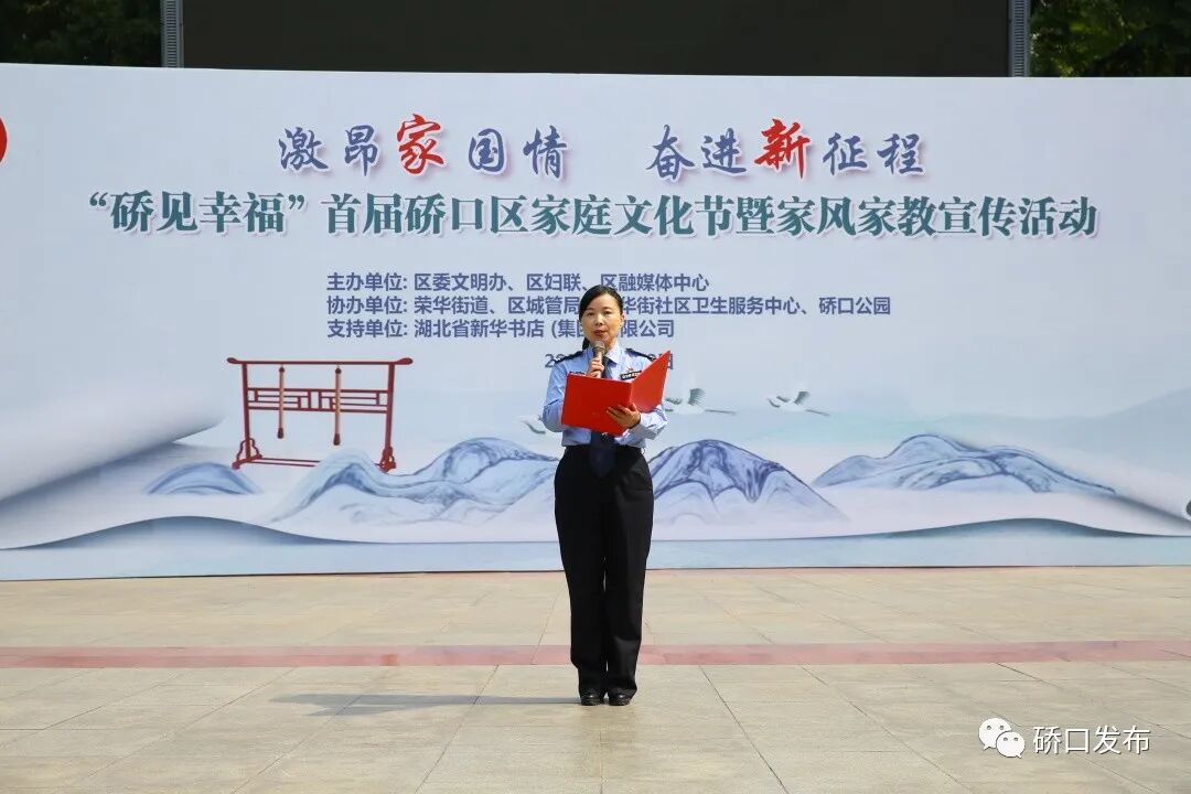 为深入贯彻落实习近平总书记关于注重家庭家教家风建设的重要论述精神,近日,区委文明办、区妇联、区融媒体中心在硚口公园中心广场联合举办“硚见幸福”首届硚口区家庭文化节暨家风家教宣传活动。区人大副主任万艳红致辞并宣布首届家庭文化节开幕。