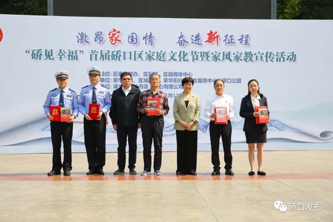 活动现场,区人大副主任万艳红、区政协副主席陈涛为获得2023年武汉市文明家庭和最美家庭代表颁发证书及赠送《习近平走进百姓家》书籍,湖北省荆楚最美家庭代表陈海燕宣读《硚口区共同缔造“幸福家”倡议书》,相关部门领导为荣华街6户困境家庭赠送家庭关爱礼包;武汉市最美家庭代表、硚口区古田街万红梅同志朗诵《习近平走进百姓家》节选。
