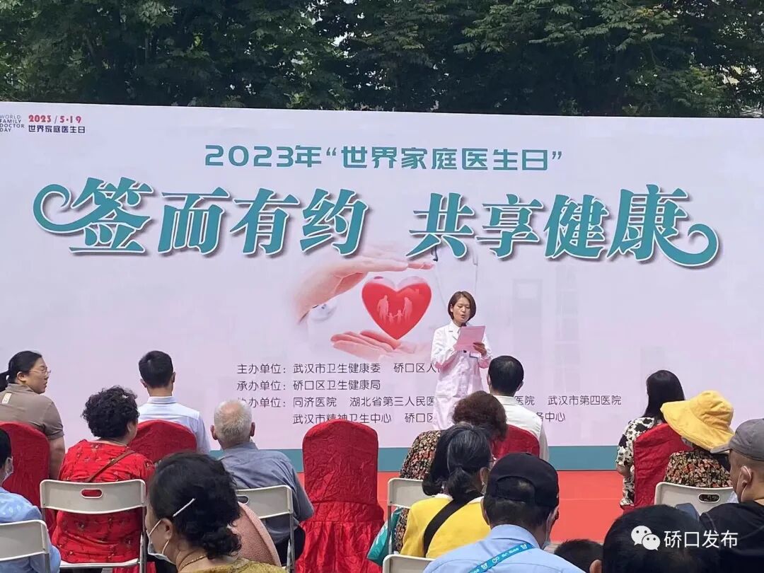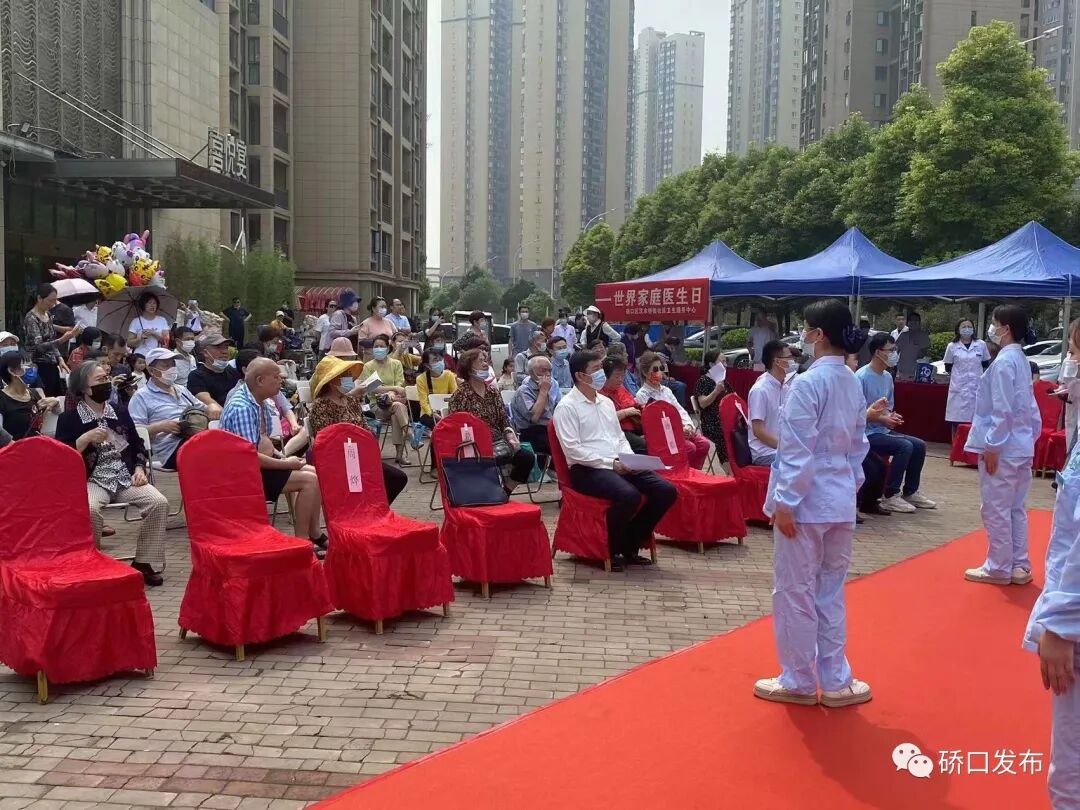 为庆祝第13个“世界家庭医生日”,推广普及家庭医生签约服务,5月19日上午,武汉市卫生健康委和硚口区人民政府在硚口区韩家墩街建荣嘉园小区共同举办了“签而有约 共享健康”大型义诊宣传活动,市卫生健康委副主任王滨和硚口区人民政府副区长孙嘉出席活动现场。