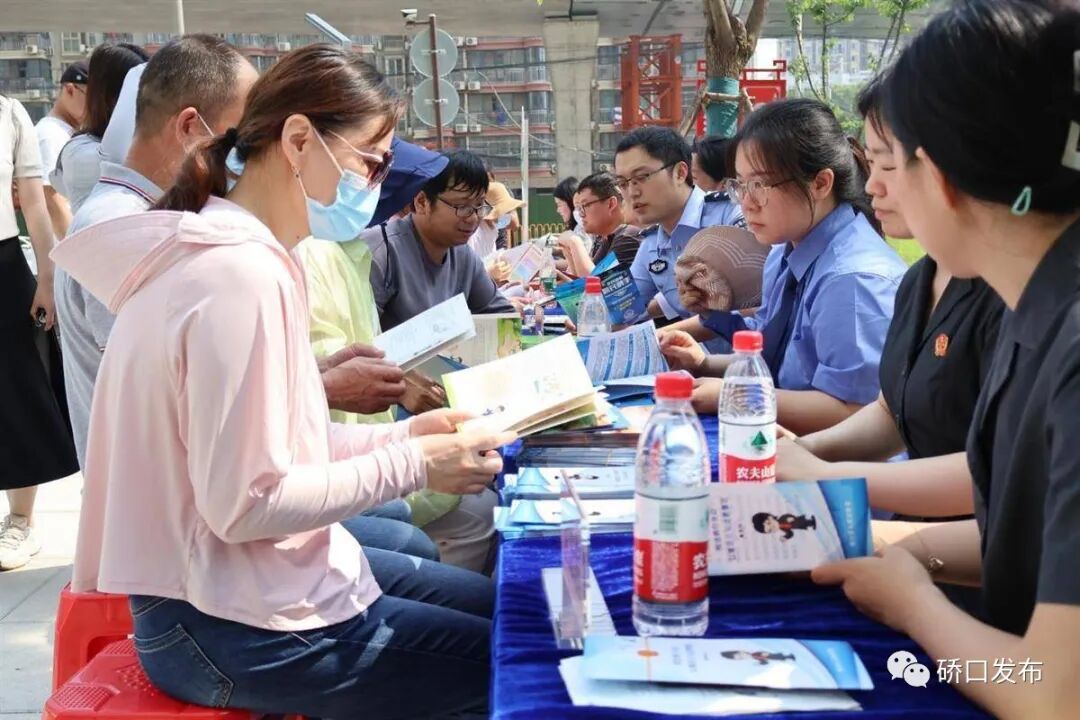公安、检察院、法院、妇联等单位组成普法集市,提供法律咨询、法律援助、心理咨询等服务,并向居民发放民法典、反电诈、防范非法集资等宣传折页。