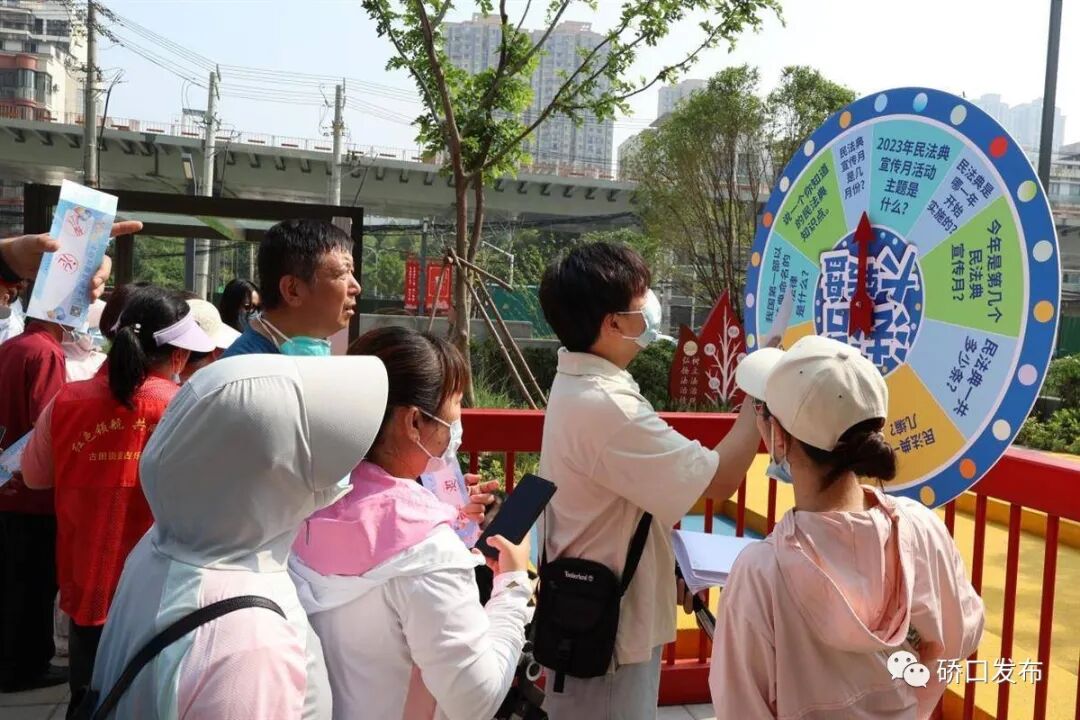 “逛公园、玩游戏、兑奖品,关键还能学到法律知识……”近日,硚口区民法典公园,居民群众边逛边了解民法典知识。