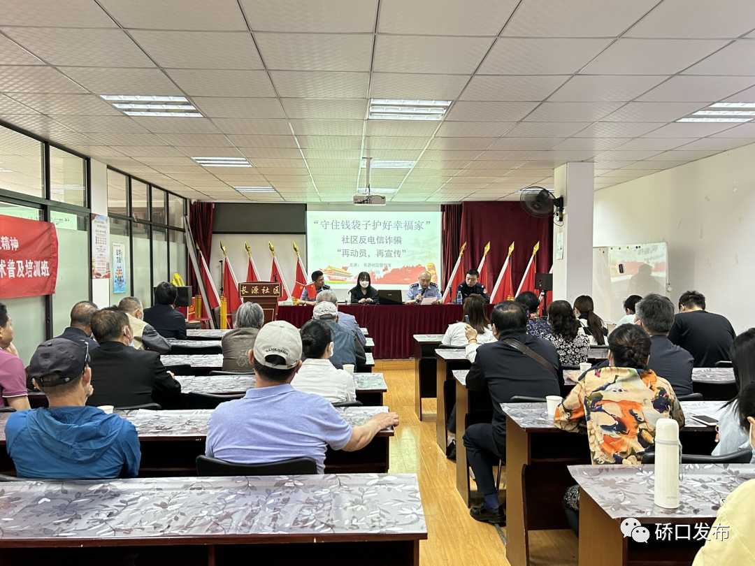 近段时间网络诈骗频发,如何识别骗子的手段,避免被骗,让居民更科学更安全更有效的捂好钱袋子,预防和减少电信诈骗案件的发生,5月30日上午,长源社区邀请辖区民警为居民群众带来了一场“守住钱袋子护好幸福家”科学防诈宣传知识讲座。讲座中夏警官向居民宣传了电信网络诈骗的种类、惯用手段,讲解了如何识骗、防骗,让大家更好地掌握反诈防范知识,提升防骗意识。民警通过现实中微信红包,集赞领钱、刷单、网络转账等鲜活案例展示劝告大家及时保护好个人财产、人身安全,不让犯罪分子有机可乘。