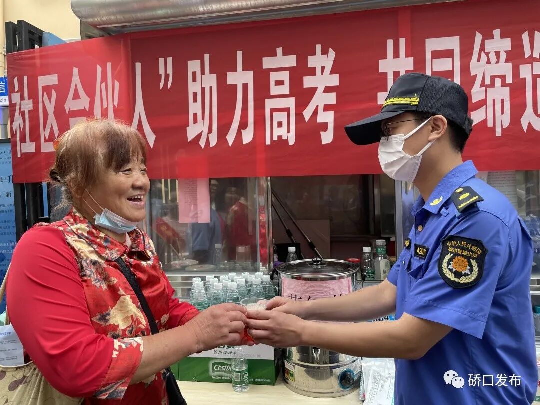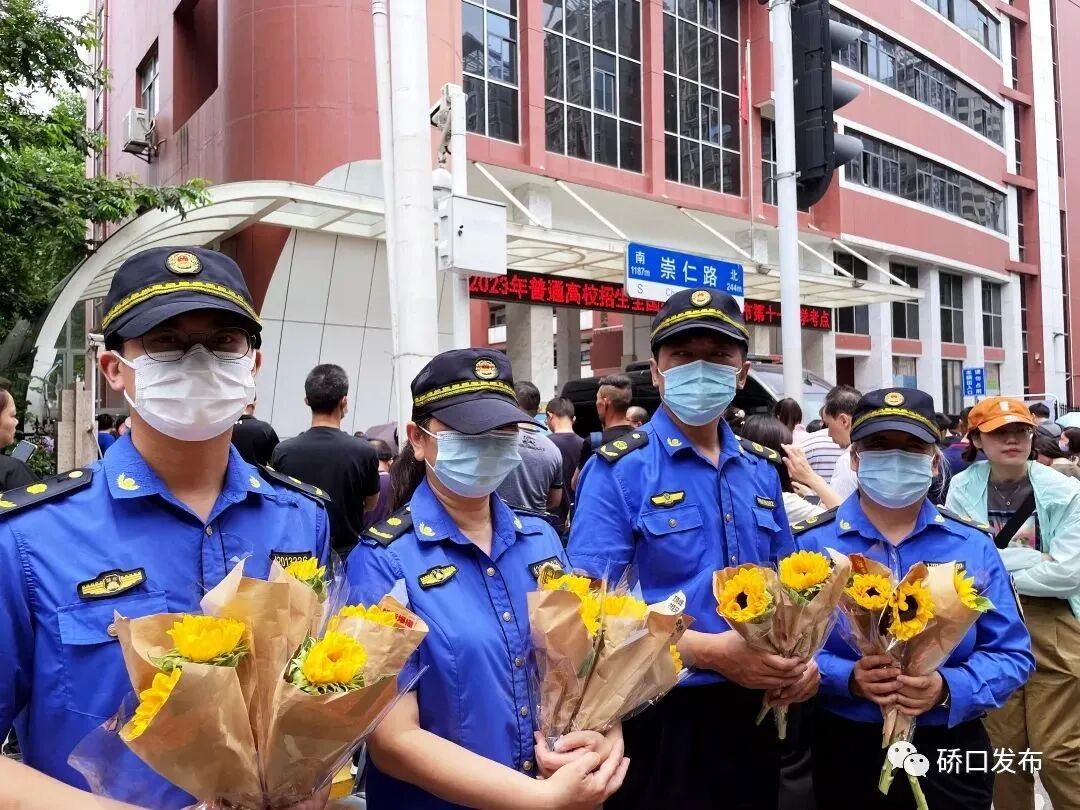 宝丰街道综合执法中心的队员们在完成保障任务的同时,手持一束束向日葵送给迈出考场的考生,寓意“一举夺魁”,衷心祝福各位考生成就梦想,金榜题名!