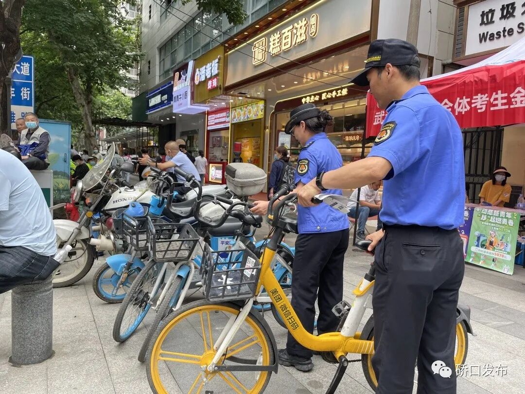 高考日,硚口“城管蓝”全力以赴担当考生的“护航者”。6月7日高考首日,自7时起,硚口区区街两级对市十一高中、十七中、二十六中、四中、一职教等5个高考考点周边开展市容秩序保障工作,安排执法人员对考点门口进行值守管控,及时劝离考点周边流动摊贩和违规散发小广告者,调度单车企业及时清运规整无序单车,确保考点周边市容环境洁净有序。