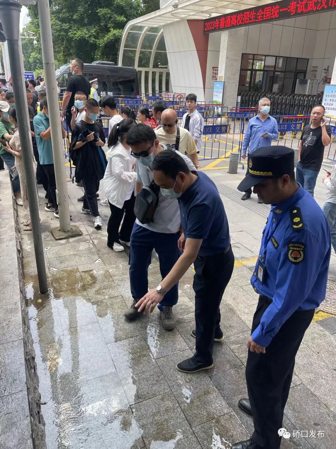 十七中考点旁,“党员降噪先锋队”静静守候,发挥党建引领和党员先锋模范作用,提供矿泉水、文具、扇子……为考生和家长保驾护航。