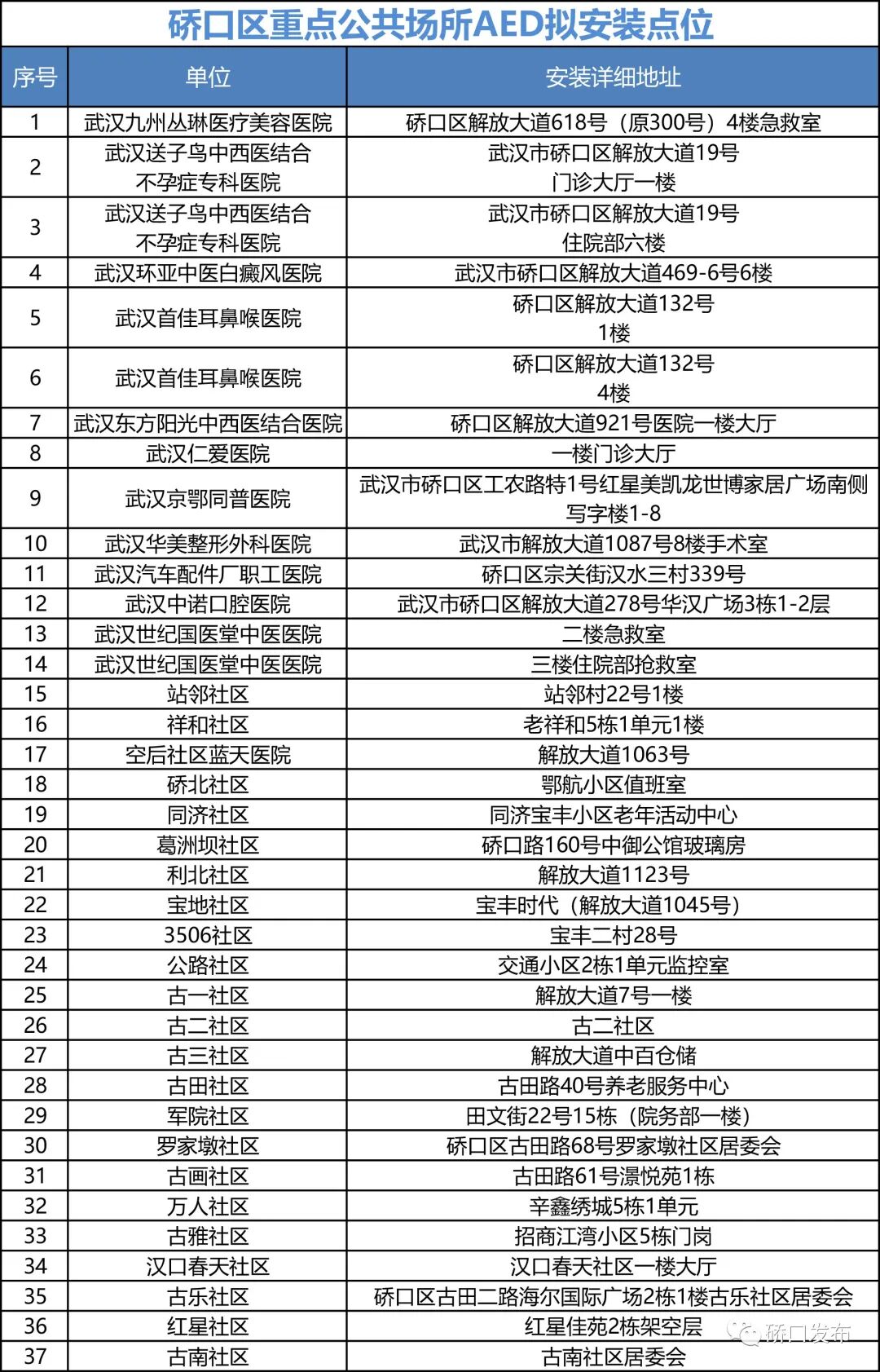 附件:硚口区重点公共场所140台AED安装点位
