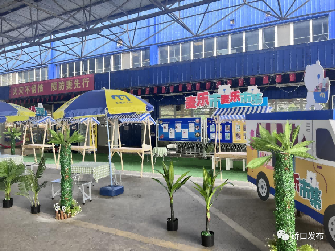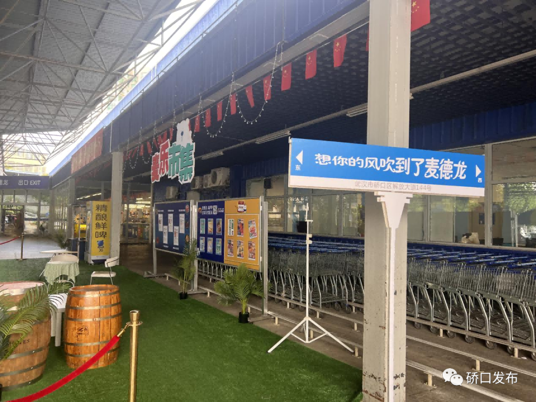 设置在超市出口的麦乐集市,让人眼前一亮的感觉。逛完超大号的超市,不免想坐下来,尝尝自己精心的挑选的美味,场景简单大方,加一些设计小心思,多巴胺颜色的桌椅,摆放整齐的市集,人间烟火和岁月静好的完美融合。