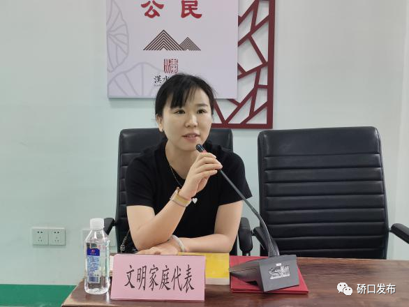 活动现场,汉水桥街道的全国“五好家庭”方红以 “忠心爱国 奋勇向前”为主题,分享了甘于清贫、淡泊名利、以廉为荣、以贪为耻的家庭故事,受到在场家庭的一致称赞;11个最美家庭代表分享了自己家庭的家风家训,他们中有24岁的年轻人,也有70岁的老人,他们或讲述自己传承家风家训的故事,或表达自己对家风及中华传统美德的理解,声情并茂地传递好家风的正能量。在场的群众深深感受到清廉家庭文化的滋养,深深领悟“国家富强、民族复兴、人民幸福”的家国情怀,最终体现在千千万万个家庭的幸福美满上。