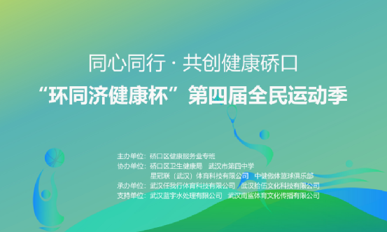 6月15日上午,“环同济健康杯”第四届全民运动季在武汉市第四中学游泳馆二楼运动馆正式开幕。本次活动由硚口区健康服务业专班主办,硚口区卫生健康局、武汉市第四中学、星冠联(武汉)体育科技有限公司协办,武汉任我行体育科技有限公司、武汉拾伍文化科技有限公司承办。