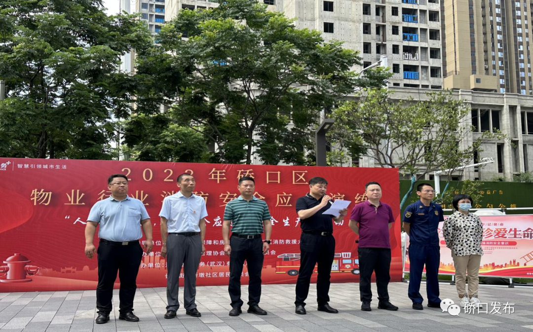 今年6月是我国第22个全国安全生产月,为进一步提高消防安全意识,增强辖区内各物业单位安防处理突发火灾的能力,6月20日上午,区房管局、区消防救援大队及武汉市物业管理协会硚口工作委员会在华润翡翠城小区联合举办了2023年硚口区物业行业消防安全应急演练活动。