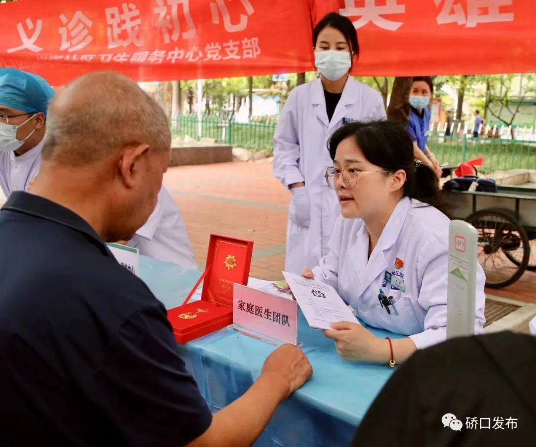 6月29日上午,一场“光荣在党50年”老党员家庭医生签约仪式在硚口公园举行,荣华街社区卫生服务中心年轻党员王蕾医生作为荣华街社区卫生中心家庭医生代表与荣华街“光荣在党50年”老党员代表熊望生进行了家庭医生签约。老党员熊望生71岁,有高血压病史20余年,刚刚获得“光荣在党50年”纪念章,又收到了荣华中心家庭医生送上的健康礼遇。随后,中心又在现场开展了义诊活动,为群众提供免费诊疗服务,前来问诊的居民络绎不绝。其中,慢病筛查、专家咨询、口腔和中医等专科义诊服务得到不少居民的青睐和好评。