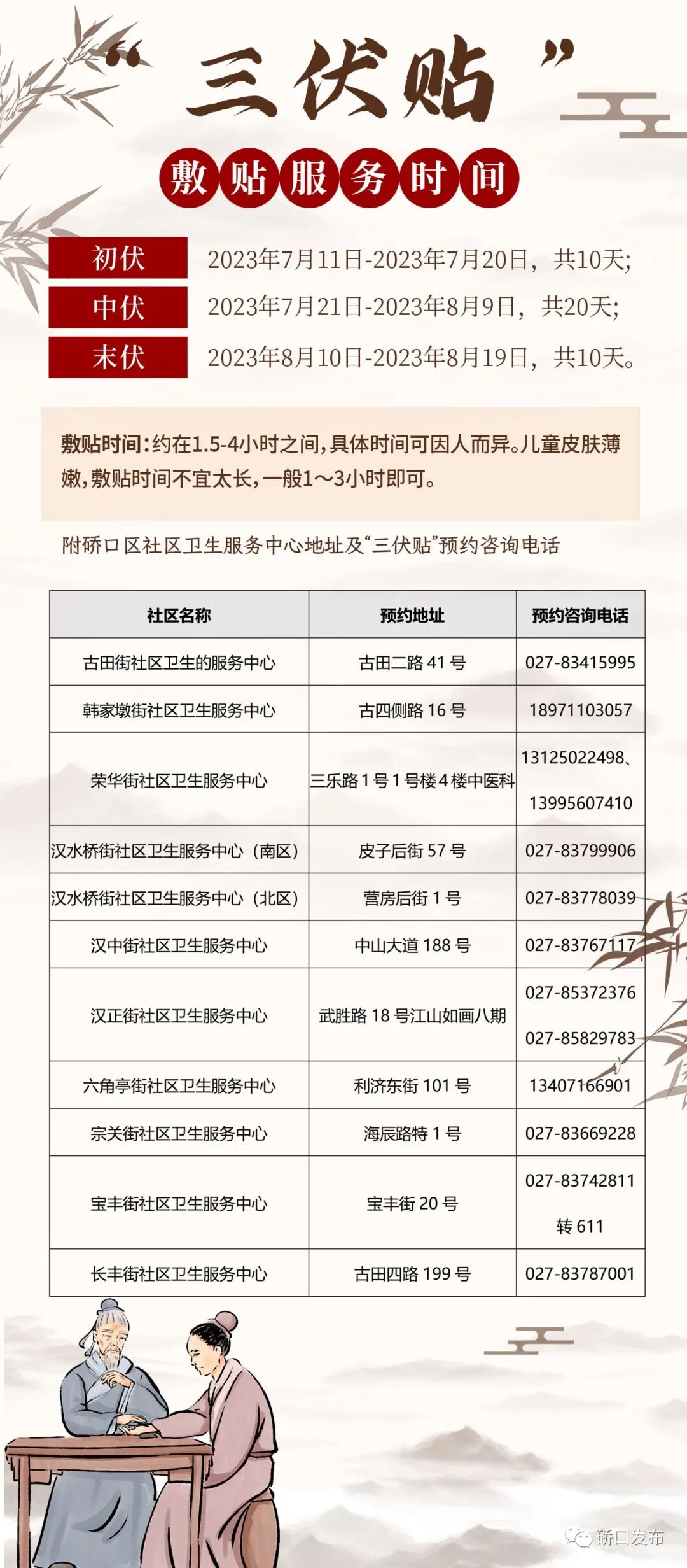 汉水桥街社区卫生服务中心拟于7月6日,联合湖北省中医院、武汉市一医院专家走进社区,为辖区居民开设专场“冬病夏治”体验活动,让大家在家门口享受优质敷贴服务。