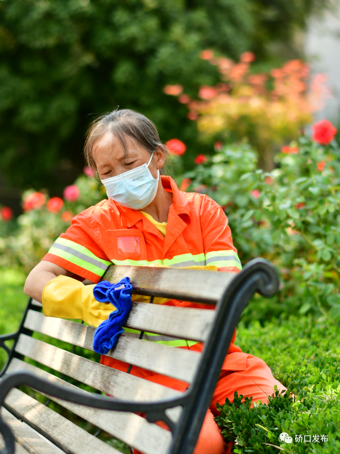 硚口环卫东区环卫工人姚响成:高温天气对我们环卫工人来说已经变得习以为常了,所谓“干一行爱一行”嘛!