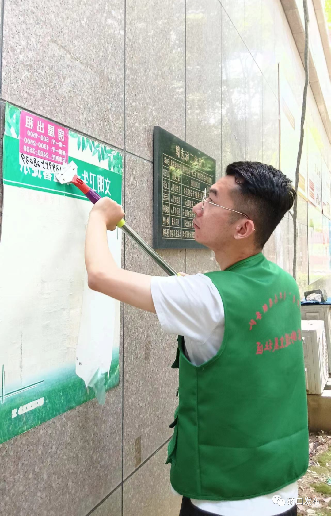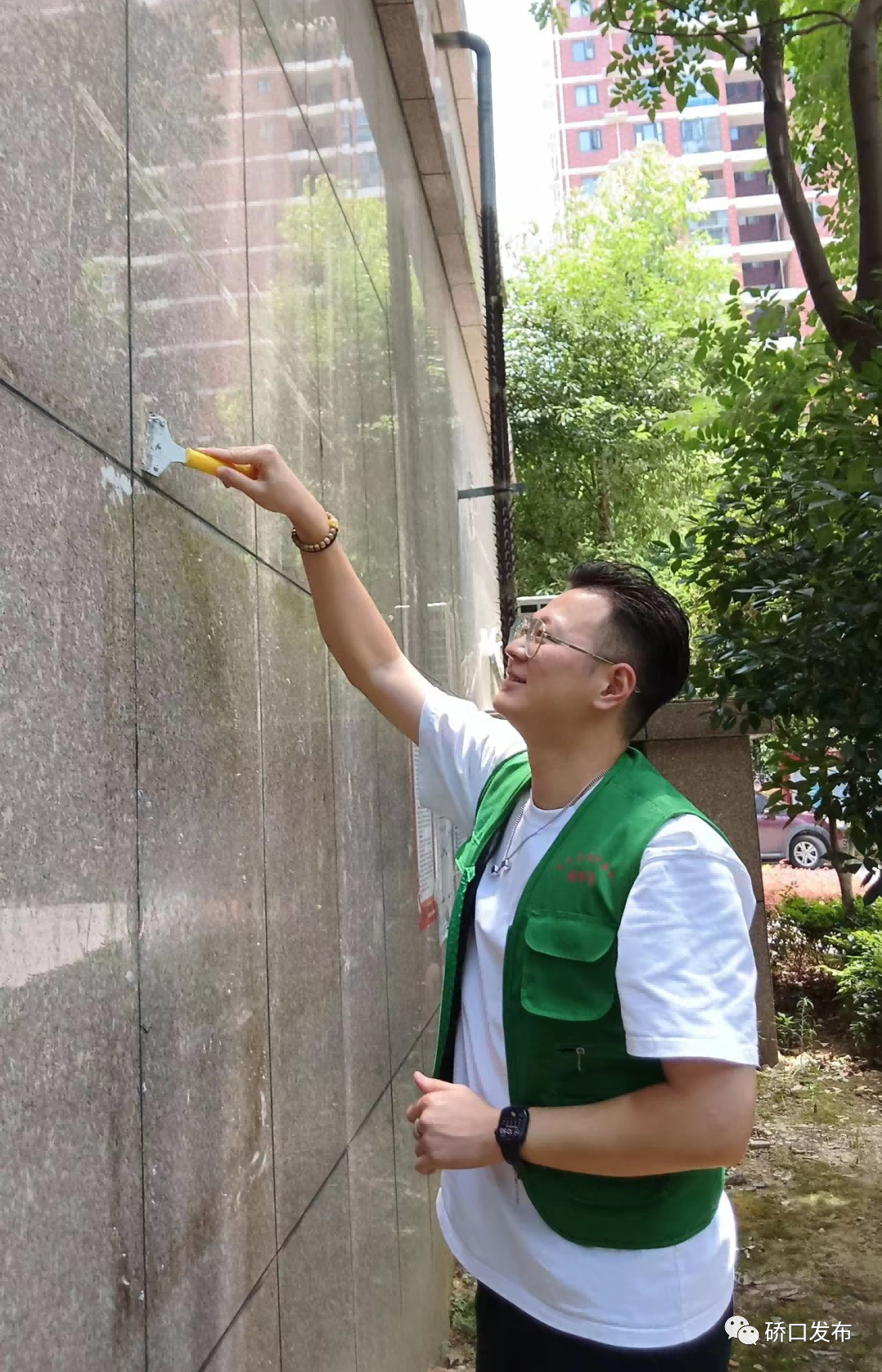 青年志愿孙振亮、王宸宇顶着炎炎烈日,在宜美社区参与“清洁家园”志愿服务活动,用实际行动践行“绿色发展理念,共建美好家园”的宗旨。营造了携手共建、爱我家园的浓厚氛围,为深化文明城市建设,创建“干净、整洁、文明、有序”的城市环境添砖加瓦。