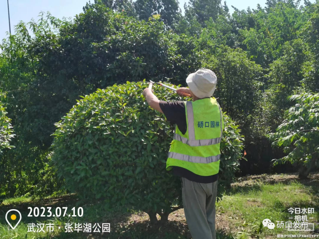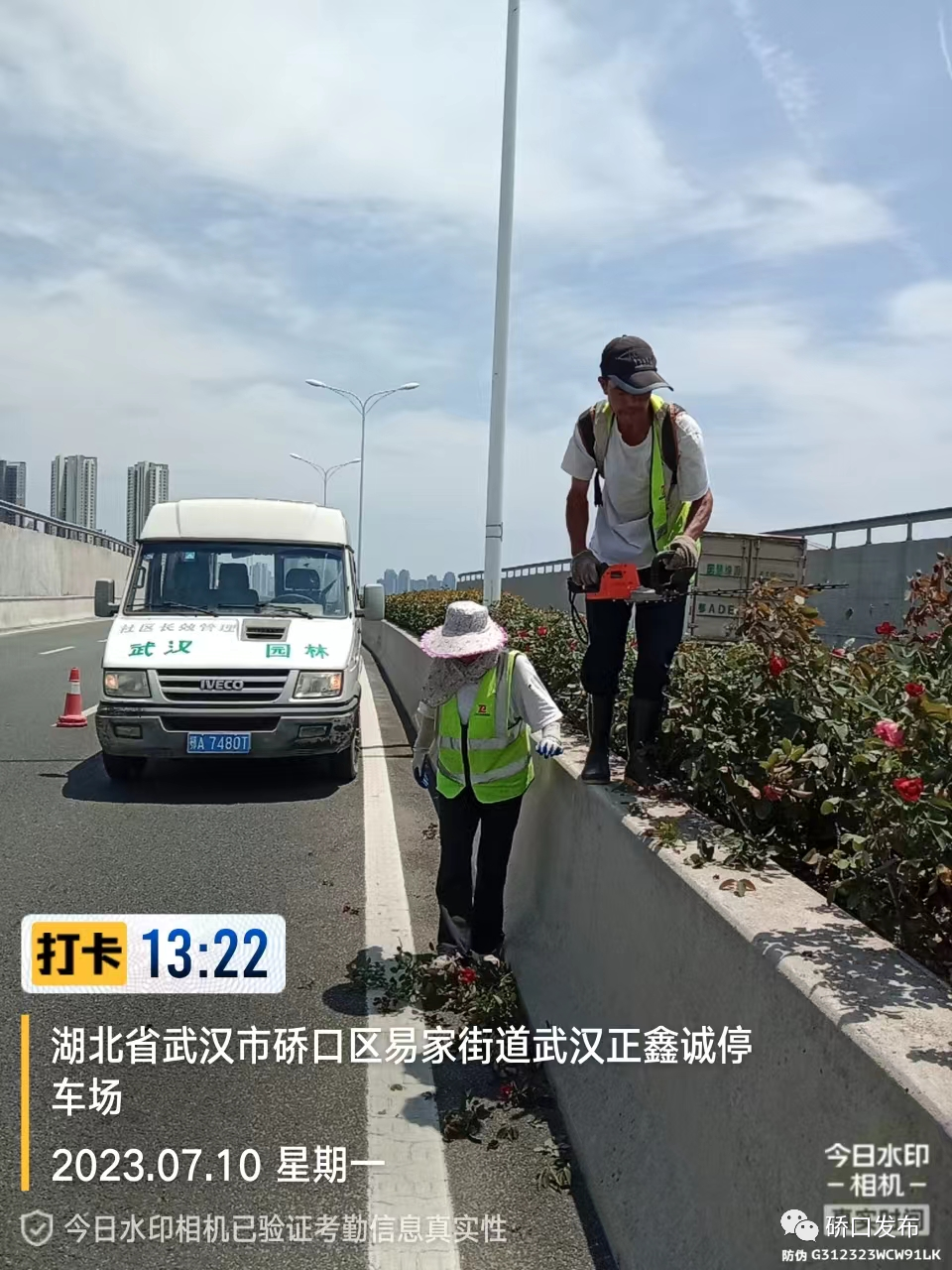 炎炎盛夏,街边的绿荫总是最惹人垂青,在这满眼青翠的背后,是硚口园林人的汗水与奉献。骄阳下,他们不惧炎炎夏日,穿着黄绿相间的工作服,割灌机、绿篱剪、草坪机等工具,穿梭于大街小巷,“雕刻”这座城市的风景线。“夏季是苗木养护的重要季节,汗水湿透衣背,太阳晒得生疼,水杯不能离身是工作常态,但是能为大家在烈日下提供些许绿荫,我们工作也都觉得值。”