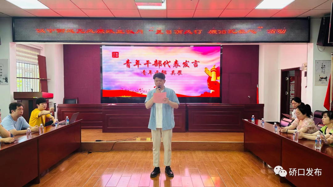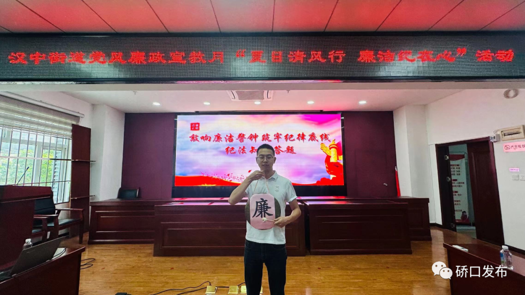7月11日,汉中街道组织开展党风廉政宣教月暨“青年·清廉”青年干部主题教育“夏日清风行 廉洁纪在心”活动。