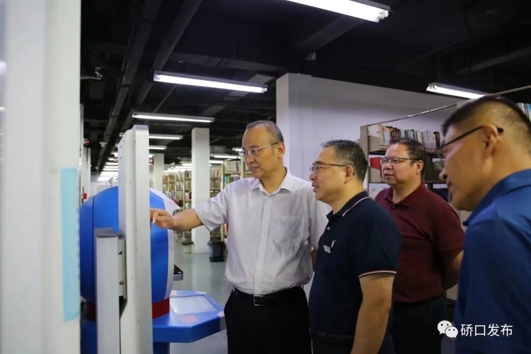 硚口区图书馆是国家一级图书馆,秉持“全方位开放、全公益服务、全社会共享”的服务方针,常年开展公益性主题讲座、少儿读书、文化展览等阅读活动,为读者提供多层次、多元化、多形式的免费服务。在硚口区图书馆,周耕认真了解馆藏结构、数字资源服务、读者活动等情况,深度体验检索机查阅图书、手机访问数字资源等功能。他指出,要充分发挥图书馆文献资源收藏功能,力争把硚口区图书馆打造为最具权威性的硚口专题文献收藏部门。